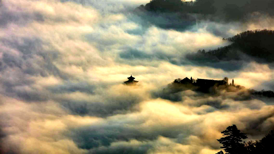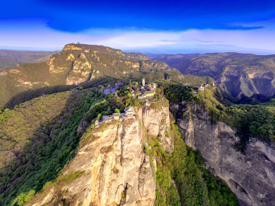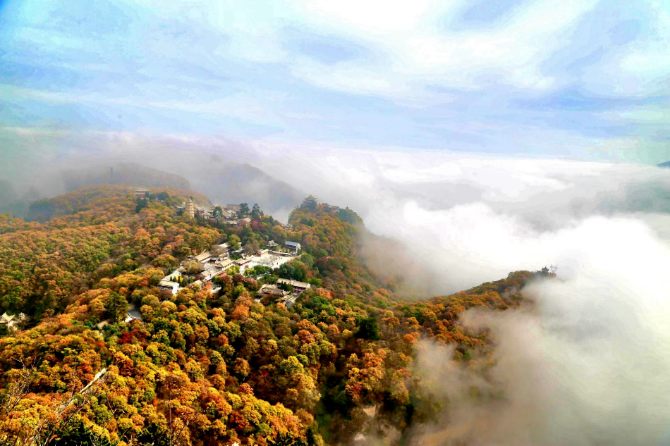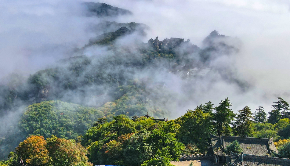 在这里,宛如仙境般碧翠的森林与广成子问道的人文历史交相辉映,形成了林海、古建筑、丹霞相结合的壮丽景观。