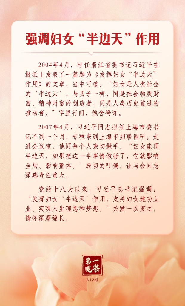 习近平总书记始终心系妇女事业发展。在全球妇女峰会即将召开之际,让我们一道深刻体悟这份一以贯之的牵挂与重视。