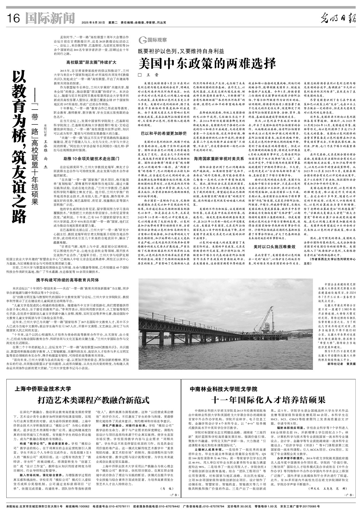 目前,兰州大学与联盟高校围绕生态与环境、生命与健康等领域,已布局建设45个国际科技合作类研究基地,推广了节水灌溉、生态修复等10余项关键技术。