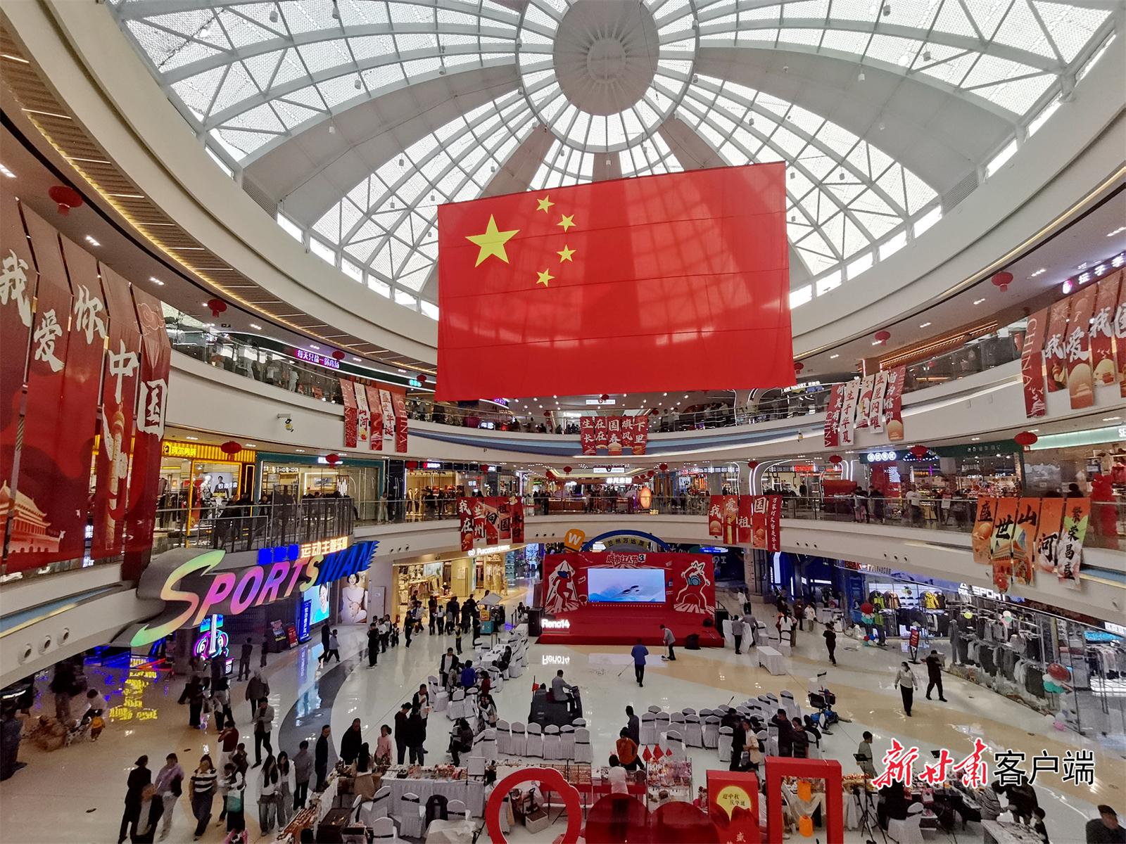 10月1日,在兰州万象城商场,各楼层间客流涌动,欢声笑语。人们徜徉在各业态间,挑选着喜爱的商品。