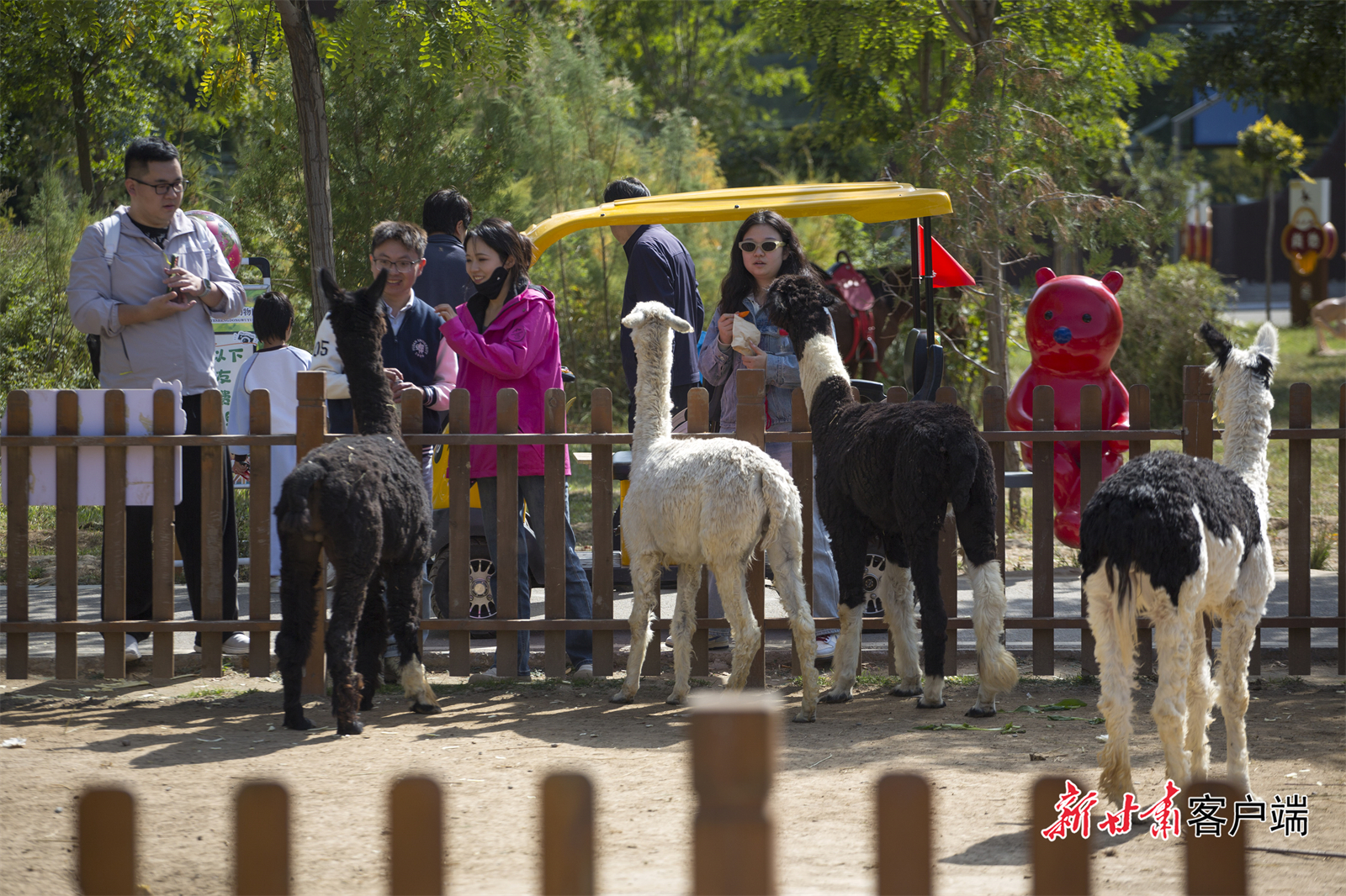 游客在武威神州荒漠野生动物园与羊驼互动。新甘肃·甘肃日报通讯员 姜爱平