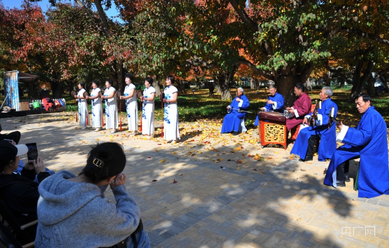 梨园中的兰州鼓子表演吸引游客驻足欣赏(央广网记者 李红军 摄)