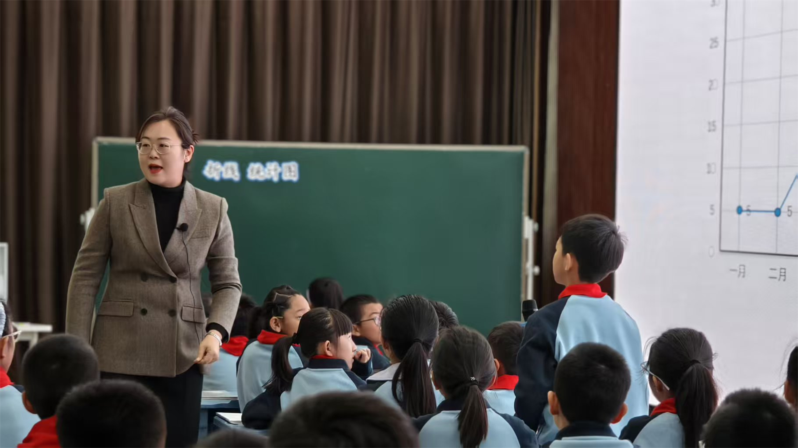 四节核心课例则构成了活动的实践根基,生动诠释了“先见林、再见树”的教学路径。从天昱小学张艺校长以城乡人口变化为情境,引导学生触摸统计解决问题的整体逻辑后再完善复式条形统计图的规范;到天昱小学于婷婷老师依托气温数据,让学生在感知动态变化规律的基础上生成折线统计图的技能;从尚德小学戴杨杨老师以比赛争议破解平均数的机械计算困境,将知识锚定在生活应用的土壤中;到吴正宪名师工作室核心成员、来自北京的专家张秋爽老师以大单元视角,串联起平均数“需求—理解—应用”的完整链条,每一节课都遵循“先把握核心本质,再落实具体技能”的原则,让学生在解决真实问题的过程中,完成从“知其然”到“知其所以然”再到“知其所用”的认知进阶。