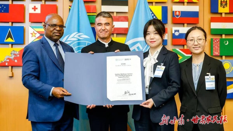 联合国粮农组织(FAO)为甘肃代表团颁授证书。
