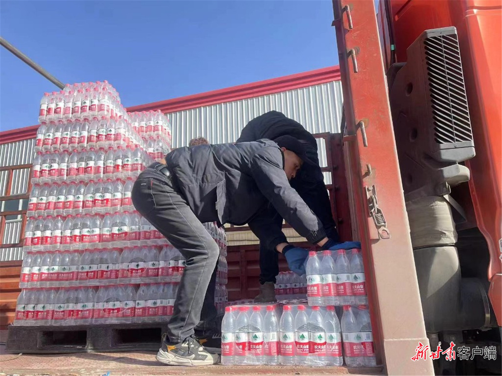 农夫山泉率先开始行动。农夫山泉甘青宁分公司迅速组织一线员工成立救灾物资小组,组织调拨饮用水物资。凌晨两点半,第一批9600瓶饮用水抵达临时安置点。清晨6点,24000瓶饮用水抵达地震最严重地区临夏积石山县大河家镇的灾民安置点。后续更多饮用水被运送到至甘肃和青海的灾区第一线。