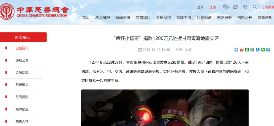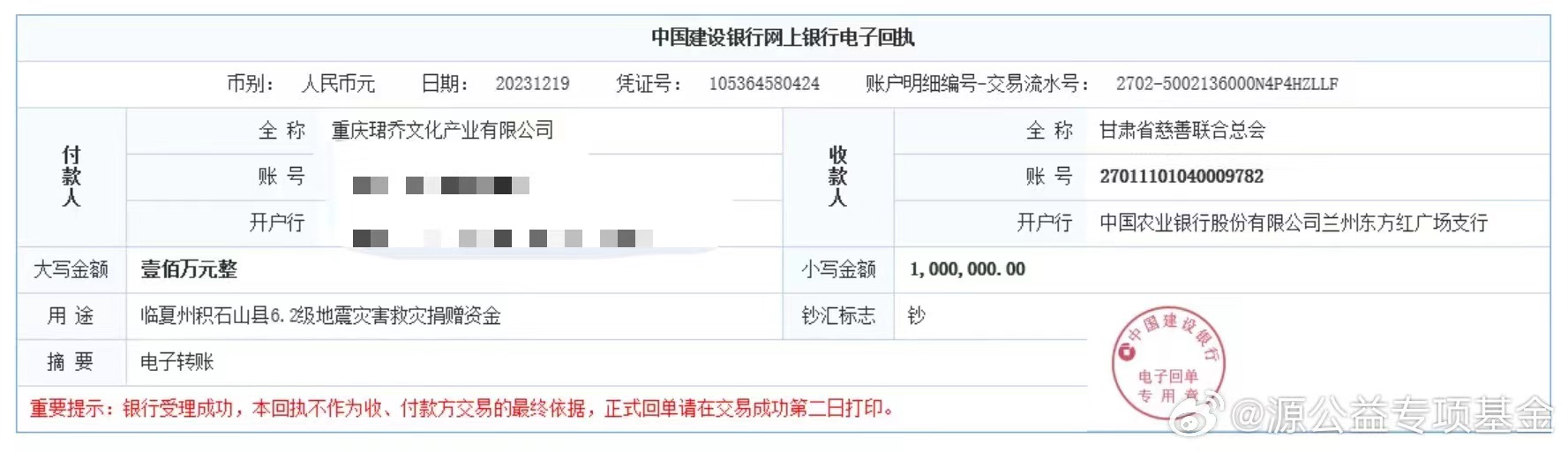 另据中华慈善总会消息,面对突发灾情,三只羊(合肥)控股集团有限公司(以下简称“三只羊集团”)第一时间通过合肥三只羊网络科技有限公司向中华慈善总会捐款1200万元,用于驰援甘肃青海地震受灾地区。