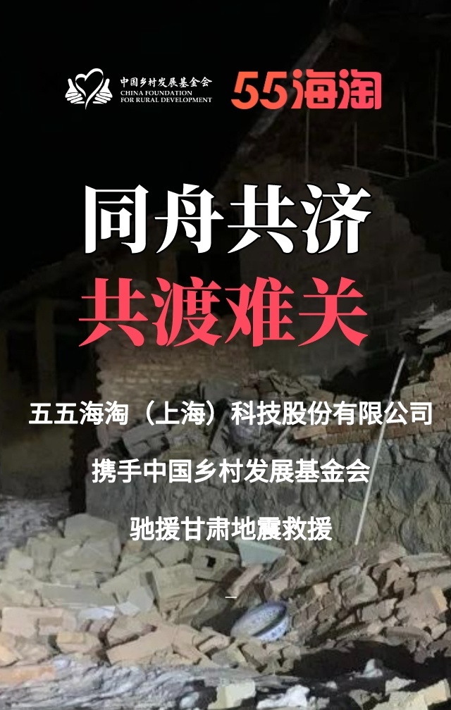 五五海淘(上海)科技股份有限公司携手中国乡村发展基金会驰援甘肃地震救援,捐赠20万元用于当地群众紧急救援及过渡安置工作。