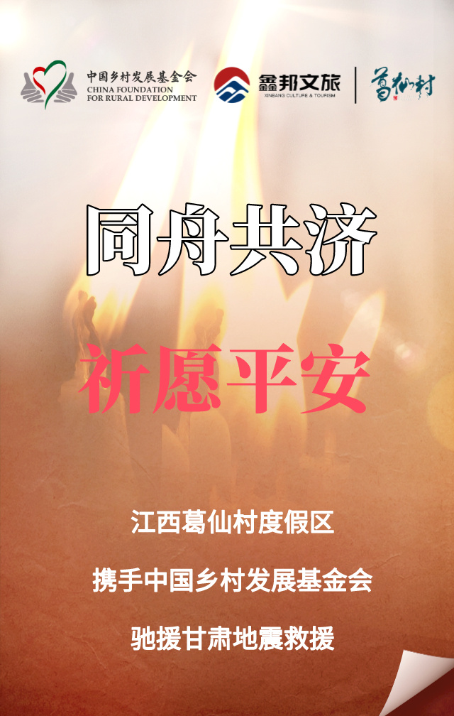 同心抗震,共克时艰,江西葛仙村度假区积极响应,通过中国乡村发展基金会捐赠30万元,驰援甘肃青海地震救援行动,用行动诠释责任与担当,用关怀传递爱与温暖。