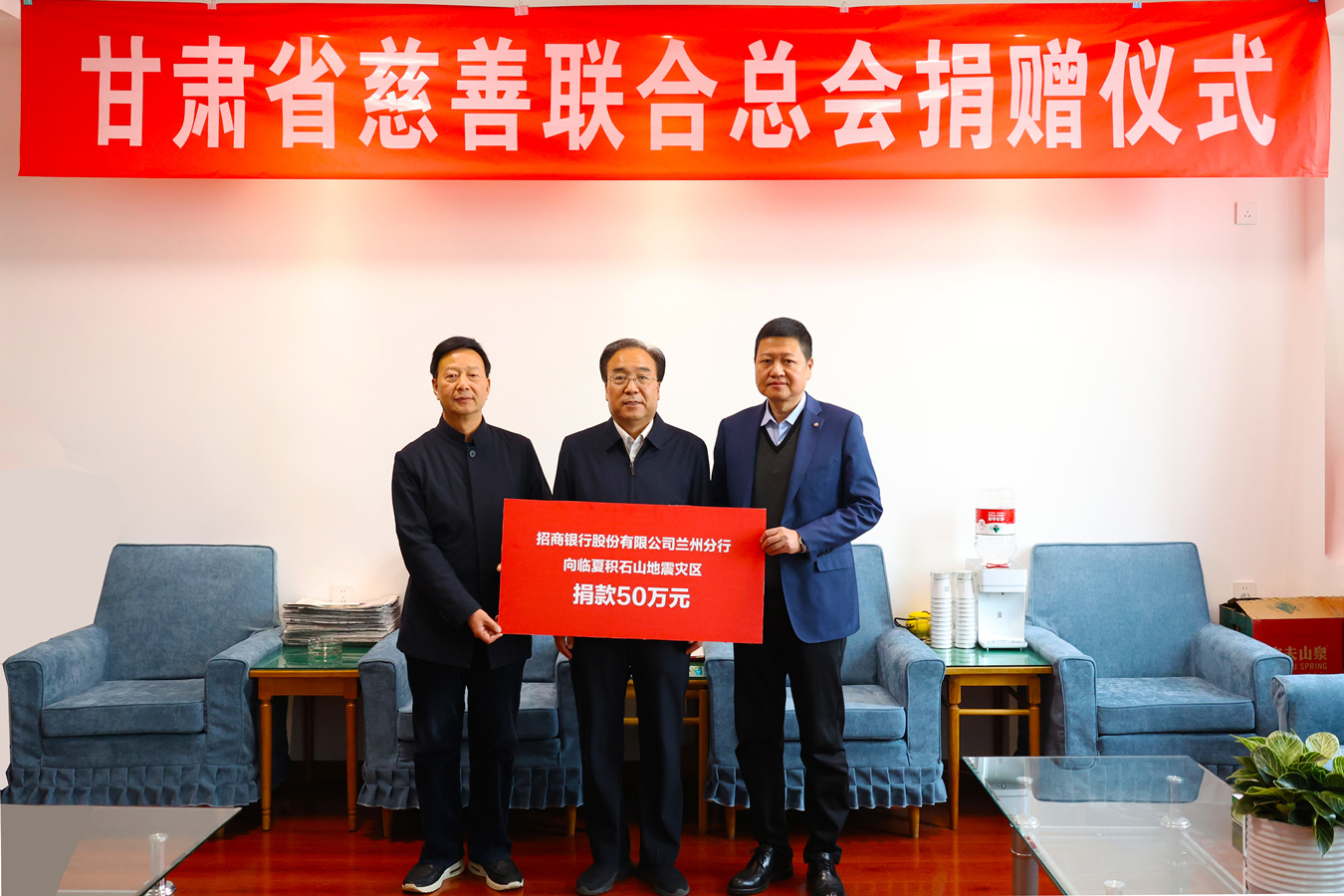 12月22日,招商银行兰州分行通过甘肃省慈善联合总会向积石山县捐款50万元,全力支援地震灾区抗震救灾和灾后重建。