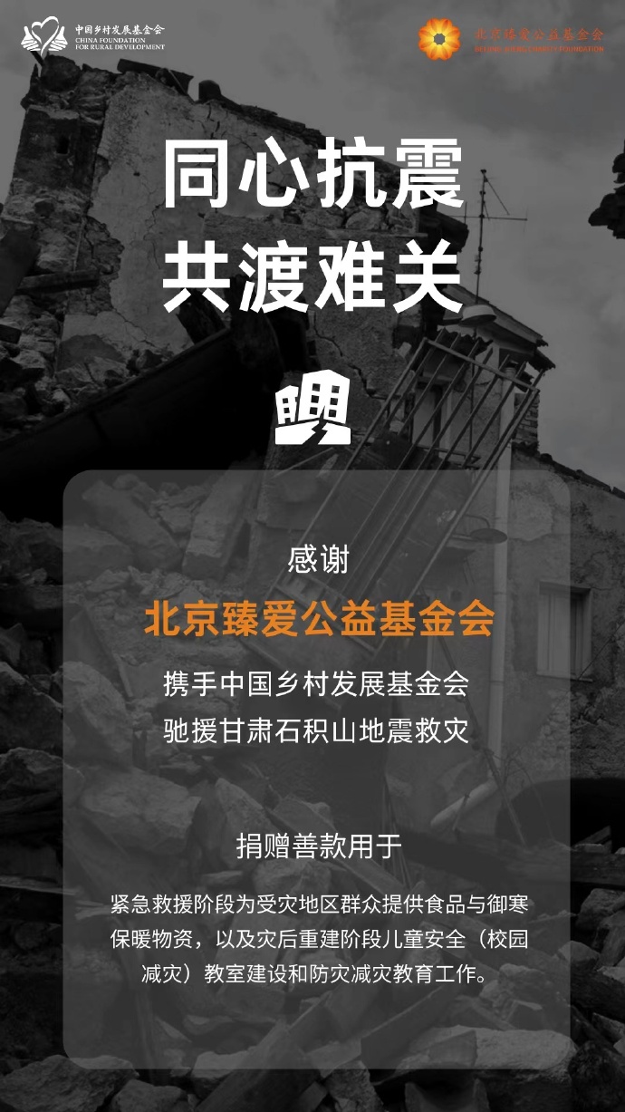 @北京臻爱公益基金会 捐赠60万元驰援甘肃积石山抗震救灾。善款将用于受灾地区紧急救援、灾后重建和校园防灾减灾教育等工作。