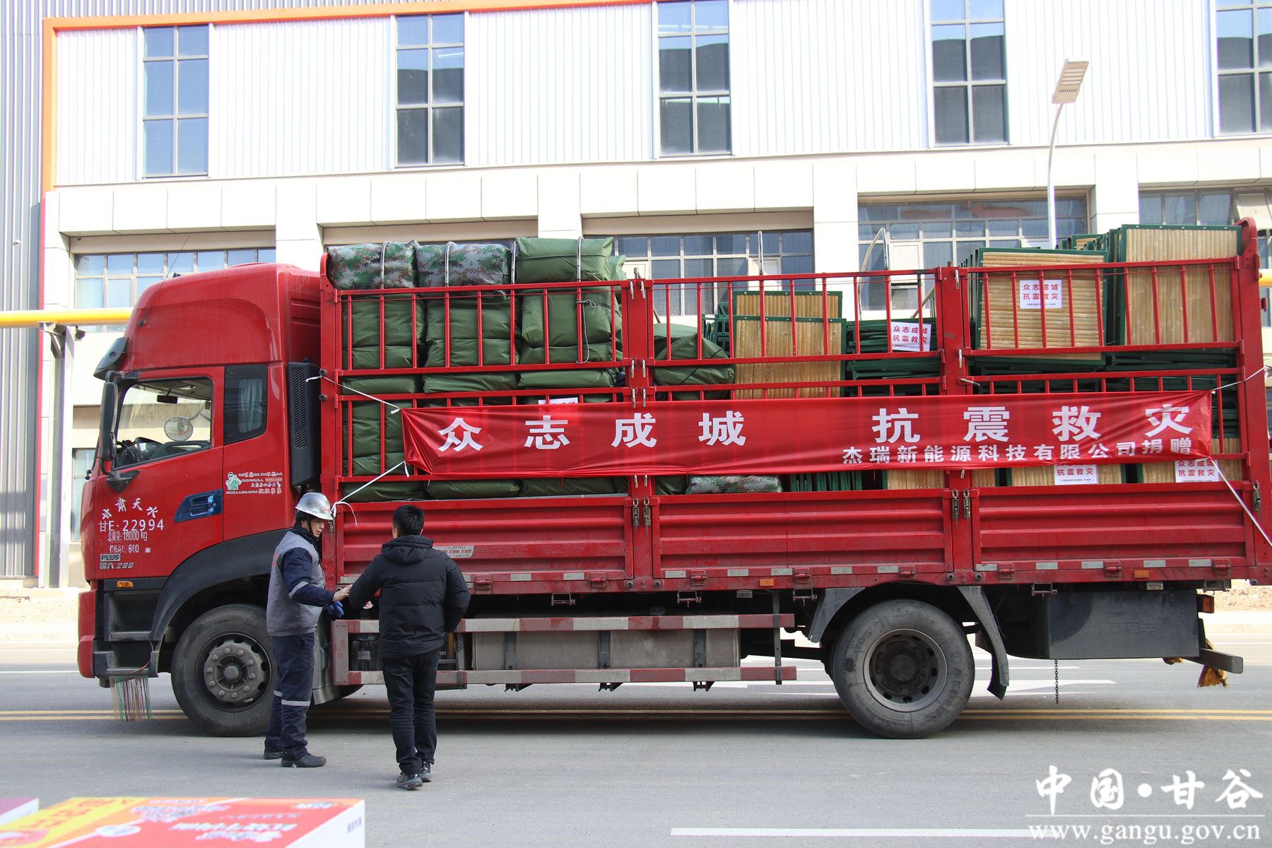 地震灾害发生后,位于甘肃甘谷的杰瑞新能源科技有限公司第一时间响应党和政府号召,积极承担社会责任,向积石山地震灾区捐赠30万元的食品、棉服、帐篷、折叠床等救灾物资,展现了企业的责任和担当。
