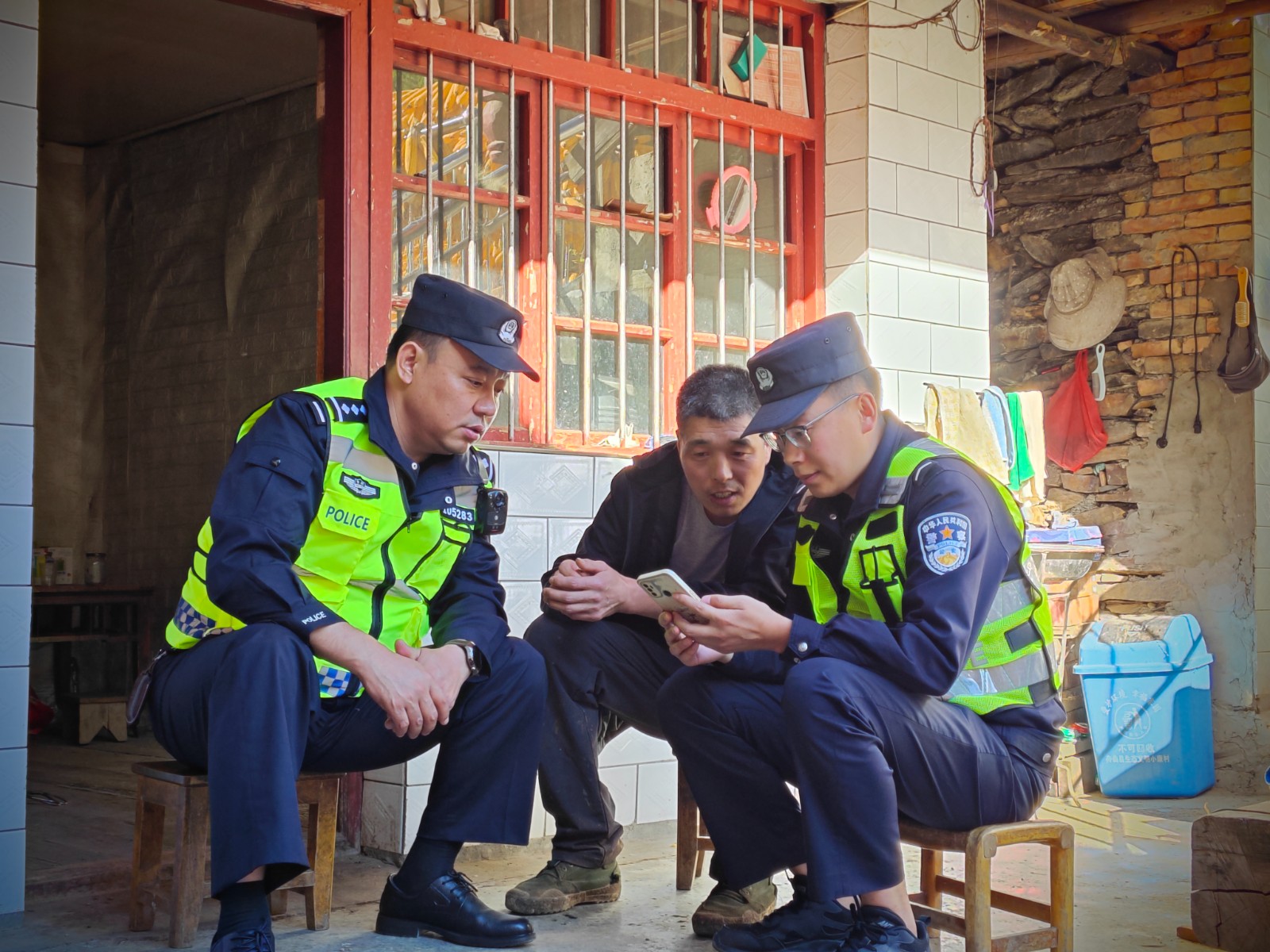 民辅警指导村民安装“国家反诈中心”App。10月15日,舟曲县公安局巴藏派出所驻村民辅警进村入户,通过讲解真实案例,宣传防范电信网络诈骗、道路交通安全、防火防盗等法律知识。新甘肃·甘肃法治报记者 金凡裕 摄
