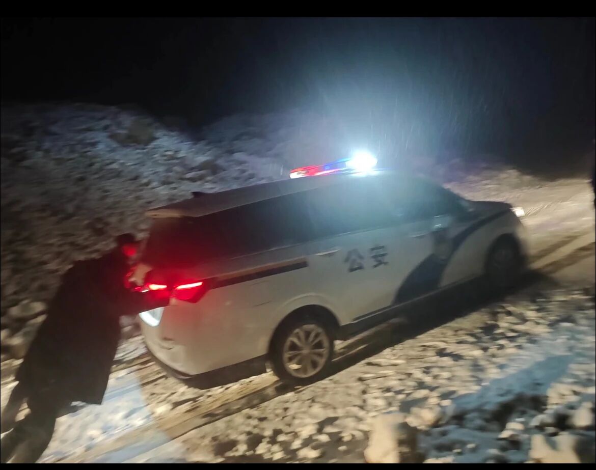 因涉及多名儿童且存在重大安全风险,和政县公安局党委对此警情高度重视,经快速研判,迅速组织开展救援行动,确保孩子们的安全。100余名救援民辅警队伍快速集结完毕,随着一声令下,大家携带防寒服、强光手电、救援绳索、卫星电话、警犬、夜视无人机等装备在夜色中冒着大雪向着太子山进发。车窗外,风势愈发猛烈,雨点夹杂着零星雪粒砸在玻璃上,发出密集的声响,民辅警们的心也跟着揪紧:“这么冷的天,孩子们可千万别出事。”