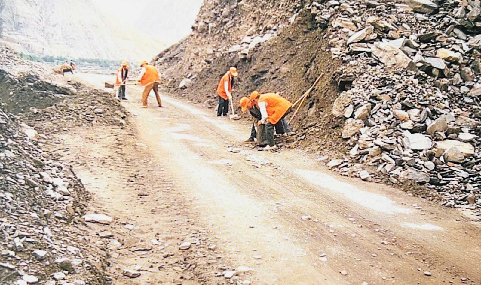 砂石路脆弱,经不住自然侵蚀和车辆碾压,坑洼、积水是常客。修补时,养路工们全凭“笨办法”:先把坑边砂石铺匀,砂不够就去河滩筛,用扁担、箩筐手提肩挑往回运;石不够就去河滩捞石子,浇水后用铁锹一锹一锹压平压实。他们心里清楚,这每一处细微修补,都连着行车的安全与顺畅,容不得半点马虎。