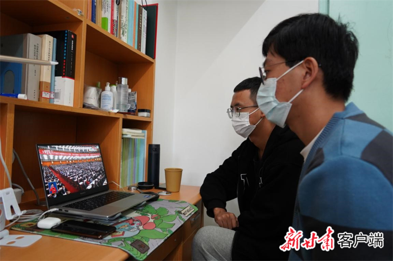 兰州大学学生在宿舍收看党的二十大开幕盛况。