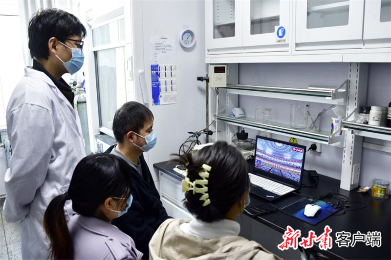 兰州大学学生在实验室收看党的二十大开幕盛况。