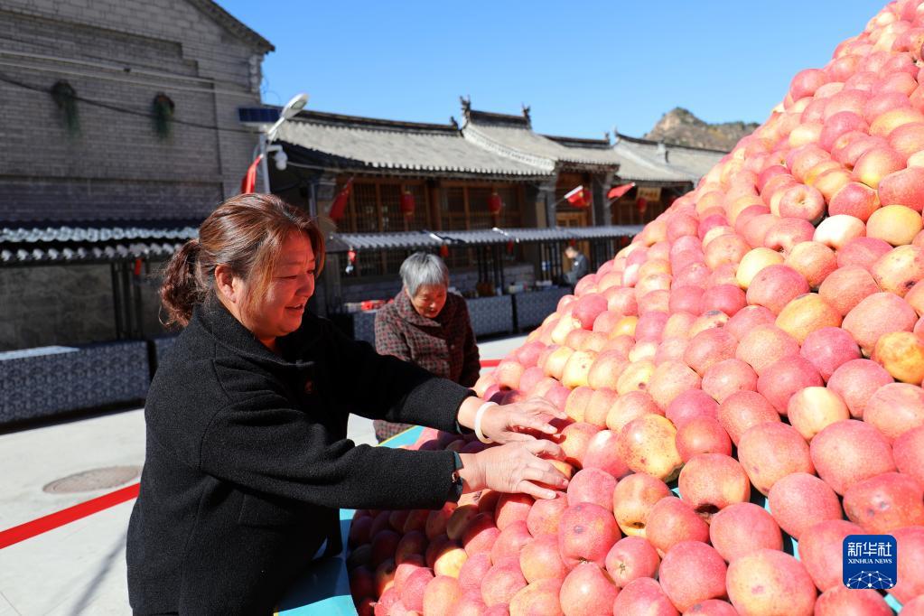 10月17日,河北阜平县骆驼湾村村民在整理苹果。新华社记者 骆学峰 摄