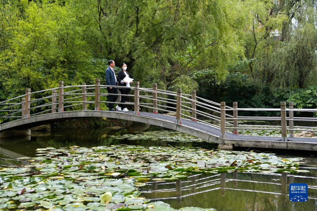 10月16日,在贵州贵阳观山湖区金阳街道,金元社区党总支副书记安春燕(右)与居民交流。新华社记者 杨文斌 摄