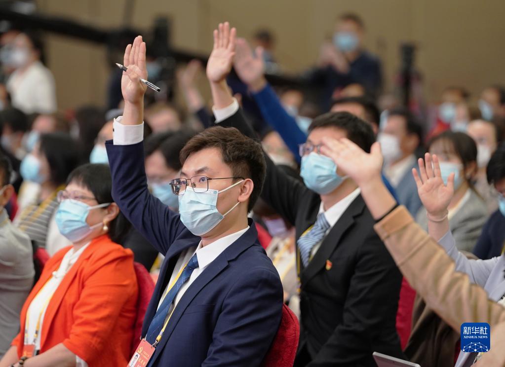 这是记者在分会场举手提问。新华社记者 陈晔华 摄