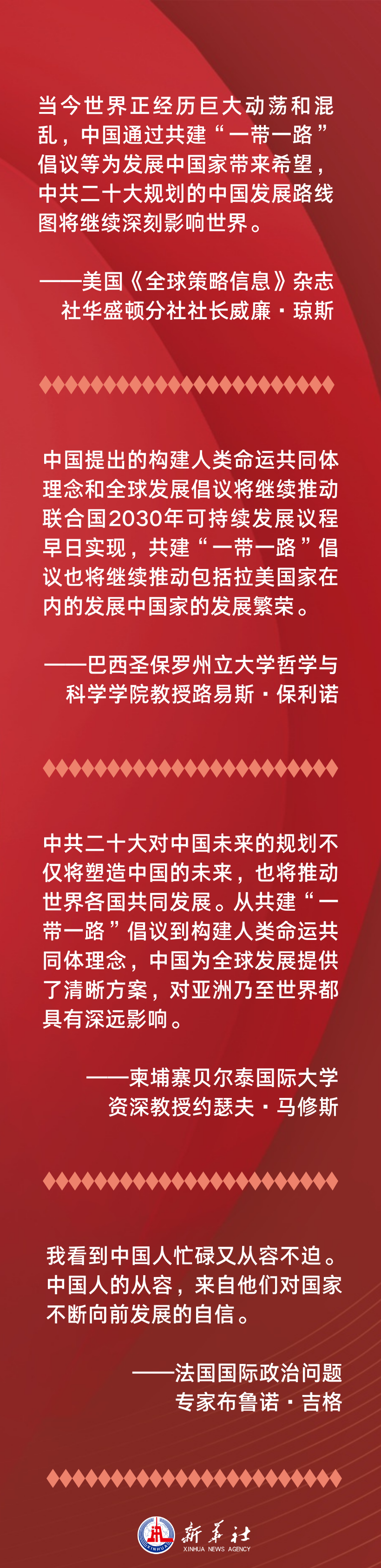 当今世界,百年变局和世纪疫情相互交织,经济全球化遭遇逆流,世界进入新的动荡变革期。多国人士期待,在中共二十大制定的发展蓝图引领下,充满韧性和潜力的中国经济为推动全球经济复苏及建设开放型世界经济提供强大动能,以中国新发展为世界带来新机遇。