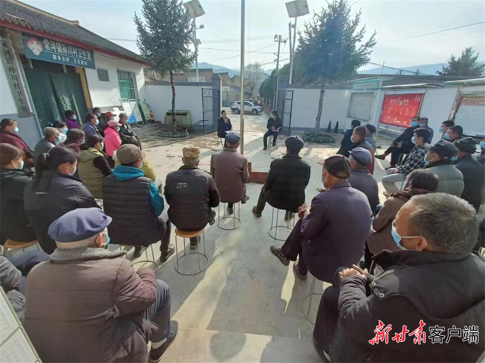 通渭县常家河镇组织党员干部入村入户宣讲党的二十大精神。