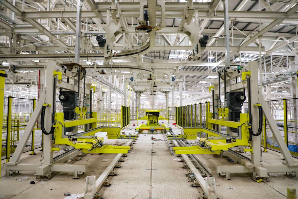 济南比亚迪工业园内正在安装设备的生产车间。(济南起步区管委会供图)