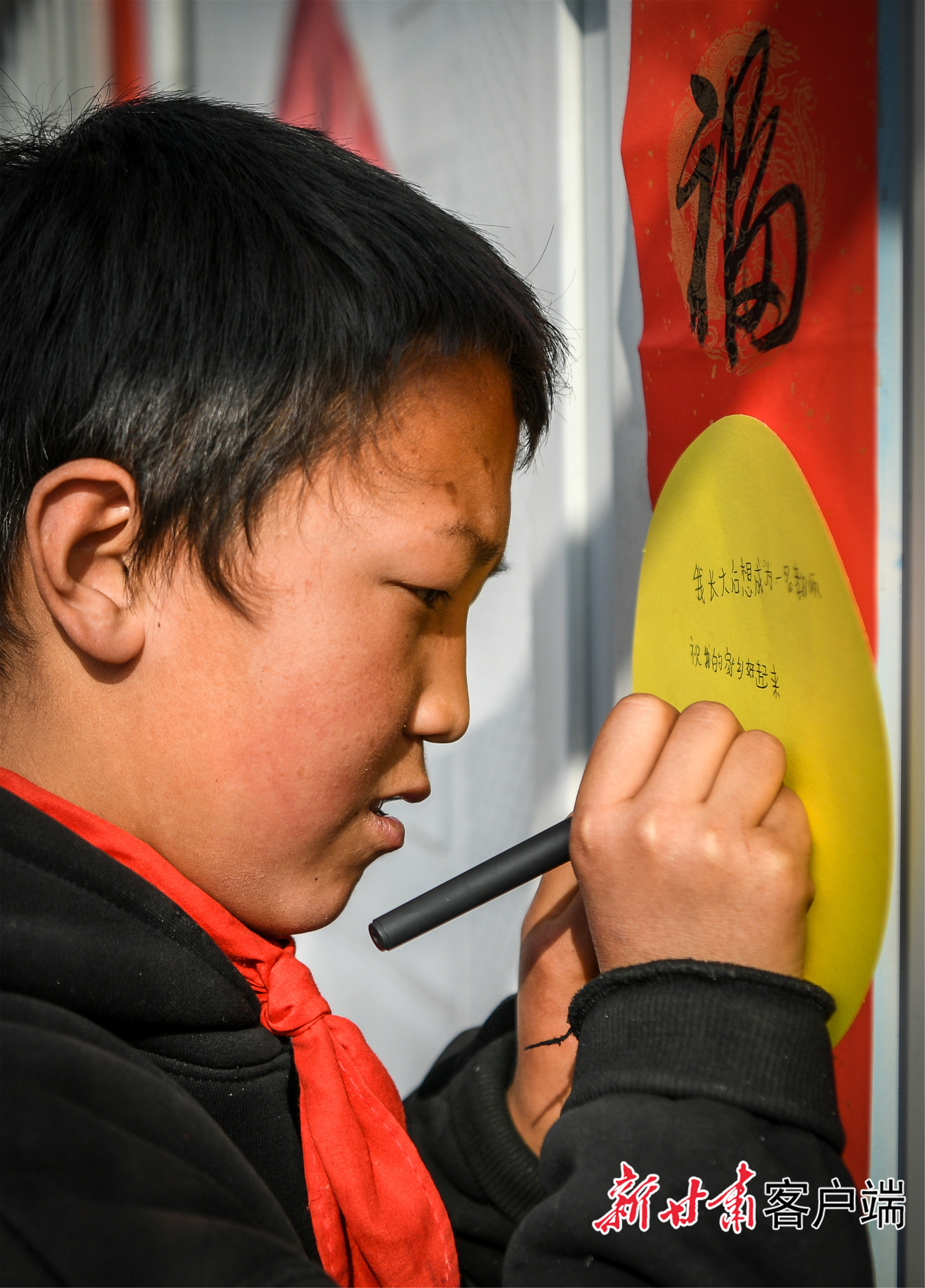 刘集乡团结村安置点,一个孩子写下新年心愿。