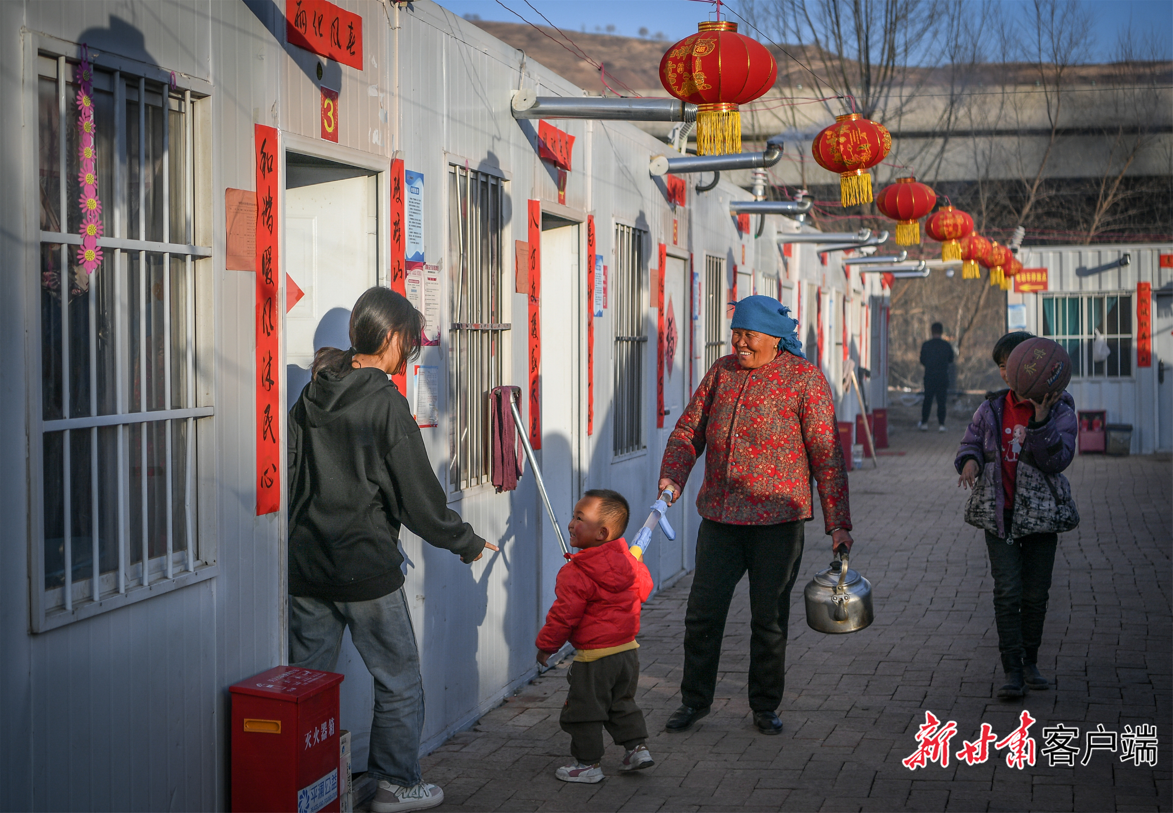 刘集乡团结村安置点,村民们相互问候就像个温暖的大家庭。