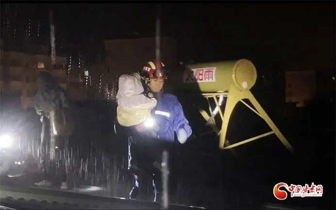 “站长马存带领我们从二楼屋檐边上慢慢探路过去,从窗户进去将老人搀扶过来。”程佺说,站长还将小孩抱在怀里,用雨衣将小孩包裹住,小心翼翼地从屋檐边上探步过来,最终成功将老人和孩子转移到安全地带。