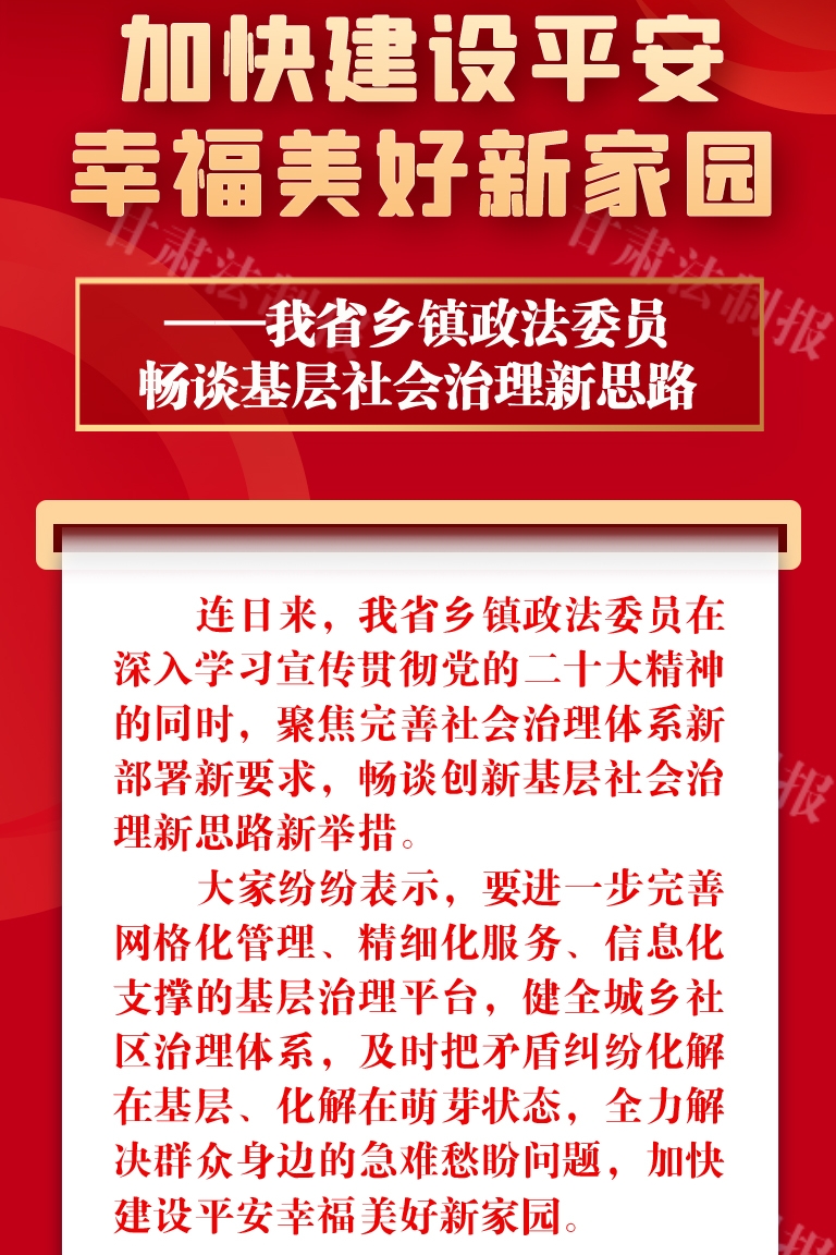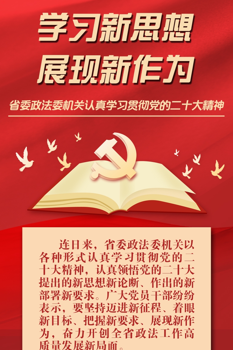 党的二十大报告用专章对法治建设和维护安全稳定分别作出战略部署。全省政法系统将精心组织,统筹谋划,强力推进,切实把党的二十大精神贯彻落实到政法工作各方面全过程。