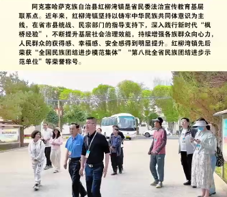 阿克塞哈萨克族自治县红柳湾镇是省民委法治宣传教育基层联系点。近年来,红柳湾镇坚持以铸牢中华民族共同体意识为主线,在省市县统战、民宗部门的指导支持下,深入践行新时代“枫桥经验”,不断提升基层社会治理效能,持续增强各族群众向心力,人民群众的获得感、幸福感、安全感得到明显提升。红柳湾镇先后荣获“全国民族团...